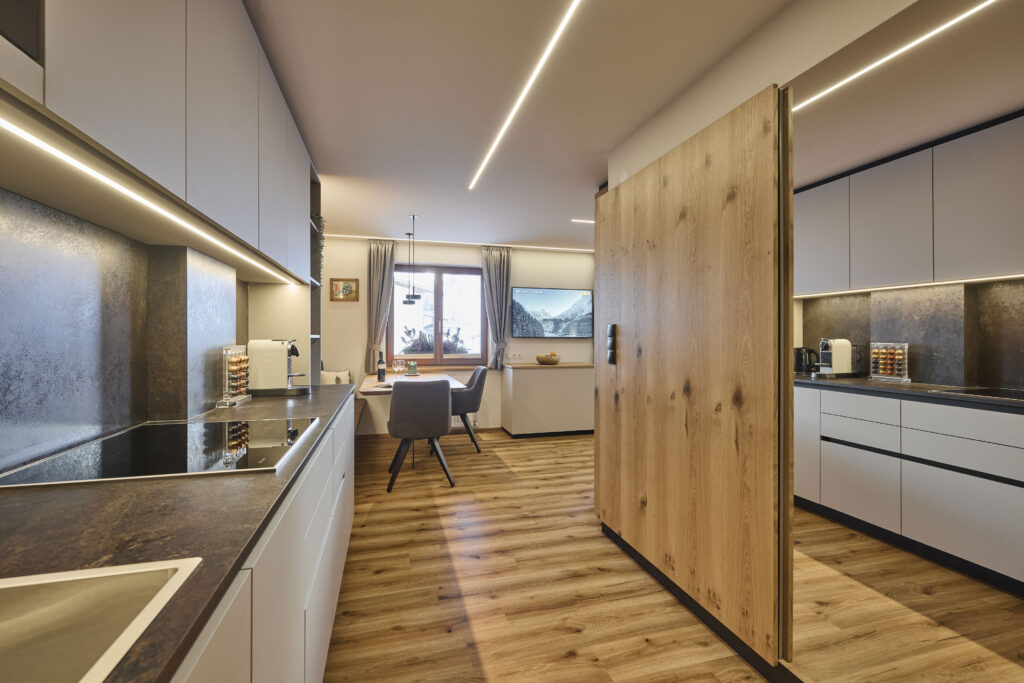 - The spacious kitchen is equipped with 4-plate induction stove, dishwasher, very large refrigerator with freezer, oven, kettle, toaster and Nespresso machine. Capsules are available in the apartment.